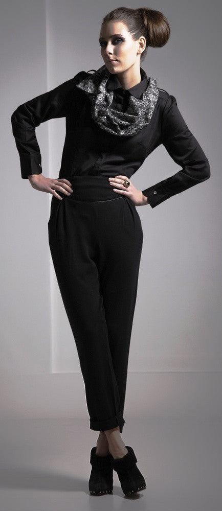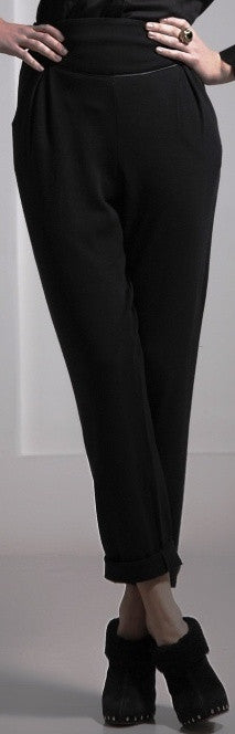 These sold out - but due to demand we are making some more and a new colour - e-mail us to pre-order - info@outsiderfashion.com Finally Outsider has created a must have trouser for you! Made from soft luxurious 100% Merino Wool jersey. These high waisted trousers with a fitted satin detail waistband, flatter your curves and are gently cut to sit like a classic tailored trouser. The play with the wool jersey ensures a modern take mixing tailoring with comfort. Pockets at front and fastens with a concealed zip at the left side seam. Machine washable.